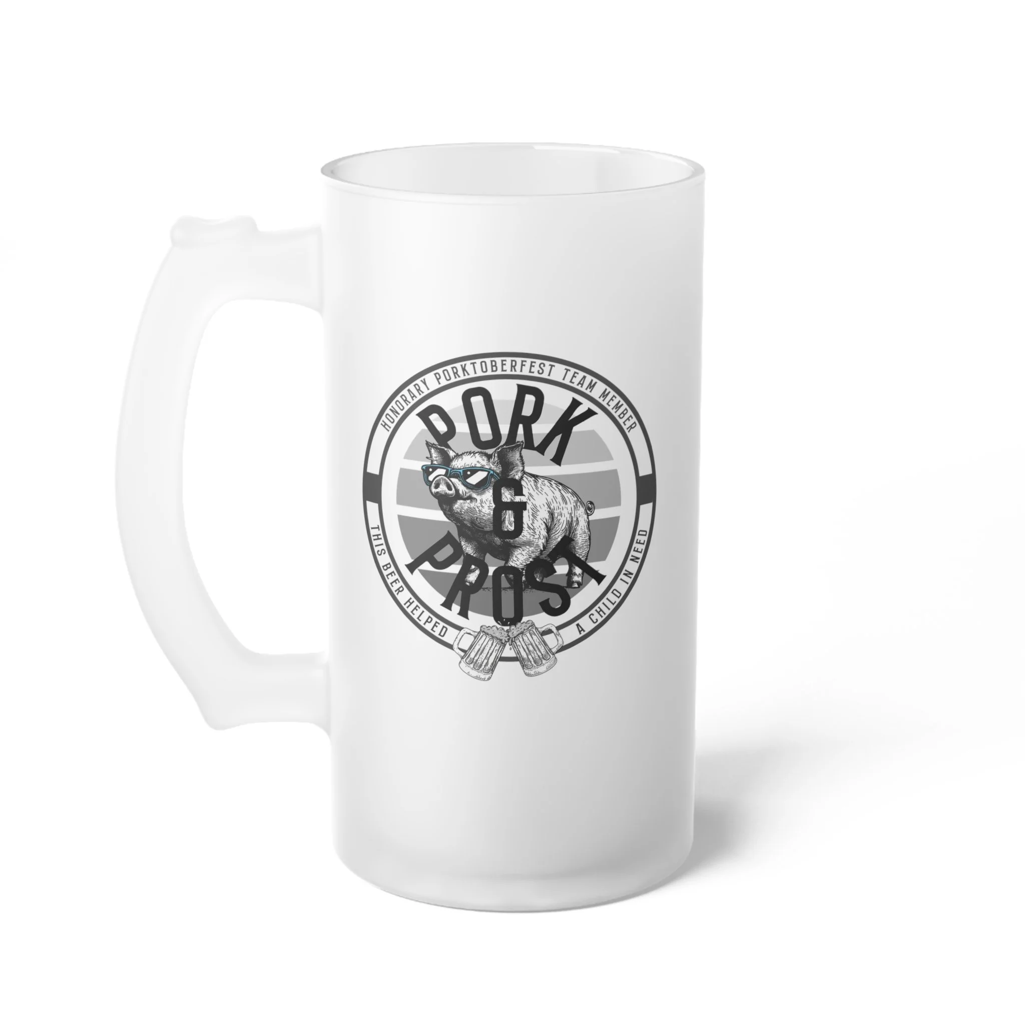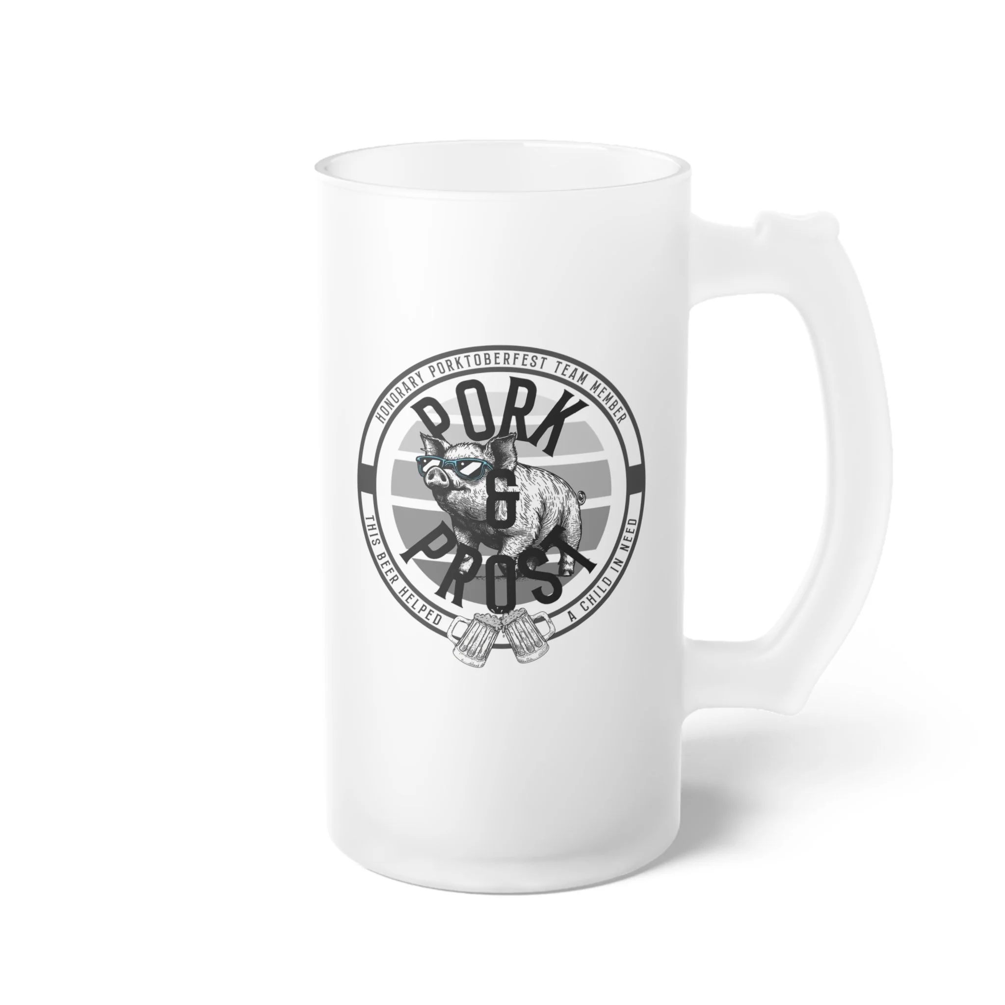 Frosted Glass Beer Mug — Colorful Circular Crest Logo Pint